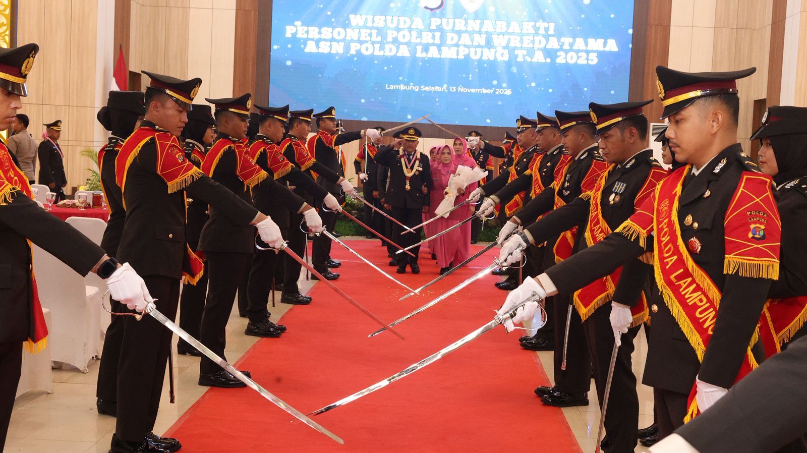 Lampung – Polda Lampung menggelar Wisuda Purna Bakti bagi 101 personel Polda Lampung yang telah memasuki masa purnatugas, acara yang berlangsung di Gedung Serba Guna (GSG) Polda Lampung, Kamis(13/11/25).